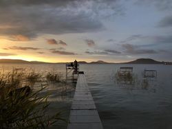 6 férőhelyes ház saját stéggel, csónakkal Balatonfenyvesen vízparti utcában