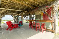 Located in Freeport in the Texas region, Huge Tiki, Crows Nest with 360 Panoramic Views of Gulf, Bay, Beach and Bridge features a garden. more